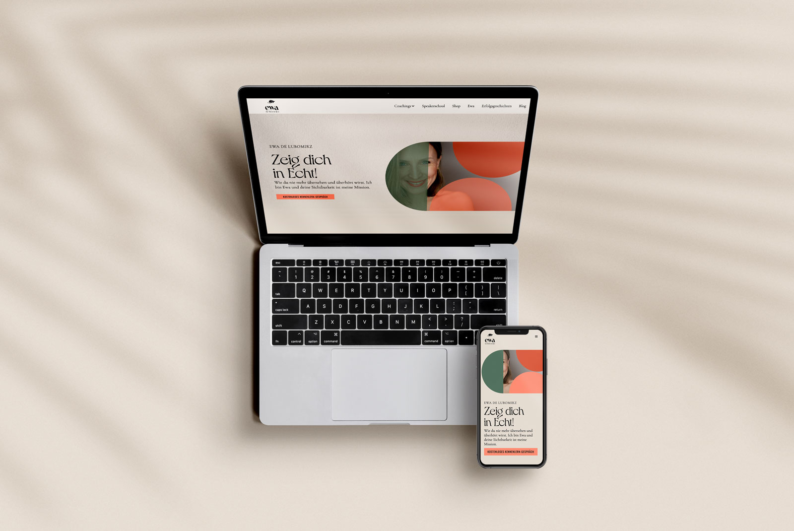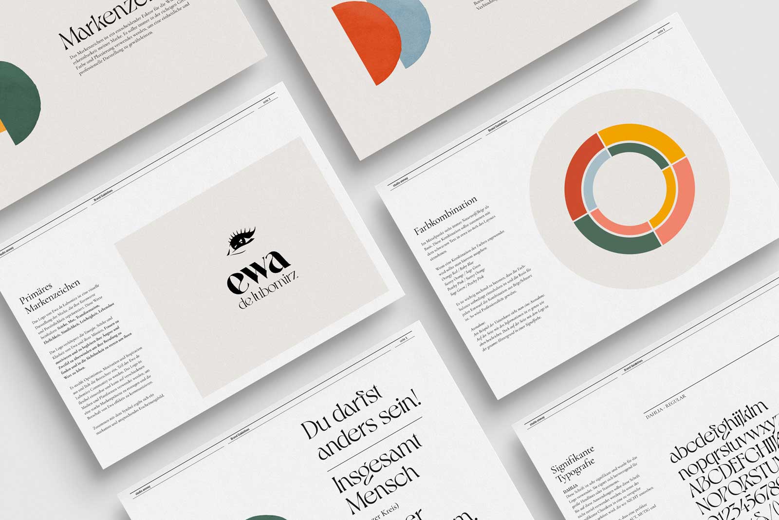 Basierend auf diesen Grundlagen begannen wir dann, Ewas Botschaft auch nonverbal in ihrem visuellen Erscheinungsbild zu vermitteln. Dies umfasste alle Aspekte, die wir in der Strategy gemeinsam erarbeitet hatten – also den Zweck, die Persönlichkeit und die Zielgruppe. Ich legte dabei besonders viel Wert auf Ewas Persönlichkeit. Ewa ist eine POWERFRAU wie keine andere – sie strahlt eine unglaubliche Stärke aus und zeigt keine Scheu, sich so zu präsentieren. Gleichzeitig ist sie sehr naturverbunden und bodenständig.
